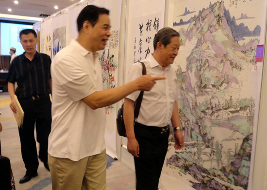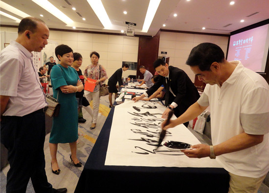 开幕式当天,组委会还举办了现场笔会。与会艺术家们满怀豪情,饱蘸浓墨,现场即兴创作了一大批艺术精湛,内涵丰富的书画艺术佳品。闻讯赶来观展的书画爱好者和市民们,徜徉于高超的书画艺术海洋中,如醉如痴,流连忘返。他们纷纷向艺术家们现场索要作品,并与心中的“偶像”们合影留念……