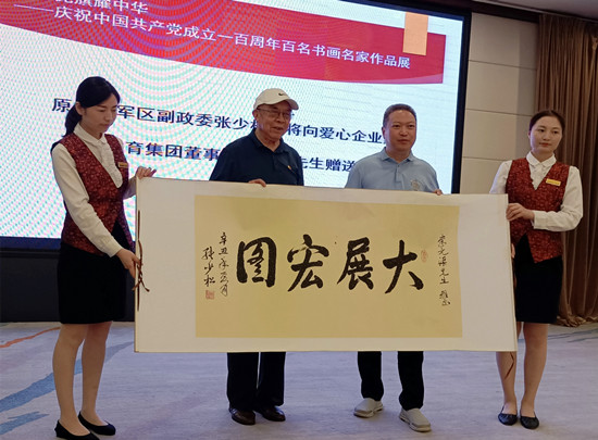 “怀着一颗感恩的心,参与这次中国共产党成立一百周年的庆祝活动。吃水不忘挖井人,幸福不忘党的恩。”3536三线军工文创园总经理邓龙代表桂雪梅董事长在致辞中表示,能与四川国防诗书画院、丹秋教育集团等单位共同举办“百年党旗耀中华——庆祝中国共产党成立一百周年全国百名书画名家作品展”,感到十分荣幸。同时,通过参与本次书画展活动,受益匪浅。从这些书画作品中,深深地感受到老红军、老八路、老将军和书画艺术家们热爱党、热爱祖国、热爱人民、崇尚英雄的家国情怀。“惟以更加优异的成绩回报国家,回报社会。”邓龙表示,3536三线军工文创园一定会将这种伟大精神融入到事业中去,为地方的社会经济发展做出应有的贡献。