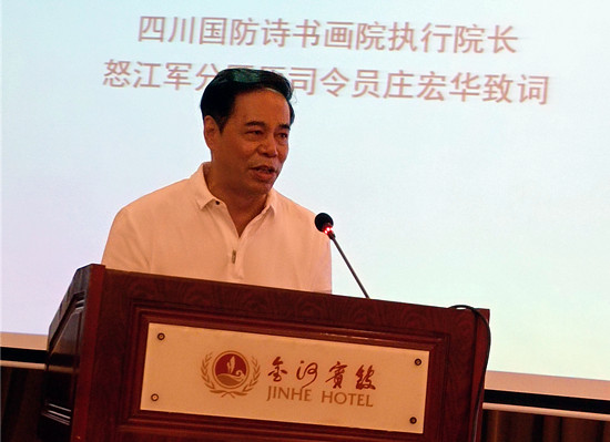 (四川国防诗书画院执行院长、怒江军分区原司令员庄宏华致辞)