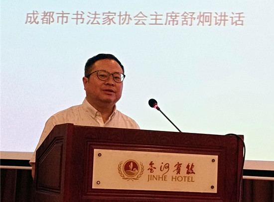 成都市书法家协会主席舒炯在开幕式致辞中对本次书画展給予了高度评价,他认为本次展览是近期同类型展览中最成功者之一:规模大,层次高,水平高,组织有序,保障有力。他寄语艺术家们继续秉持为人民服务的初心,坚定正确的政治立场,坚持“百花齐放,百家争鸣”的艺术创作方针,努力创作出更多更好的优秀文艺作品,讴歌党、讴歌人民、讴歌新时代,开创新局面!