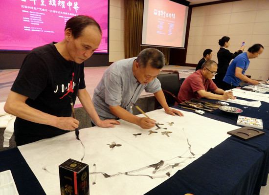 (艺术家们向来宾们现场创作并赠送书画作品)