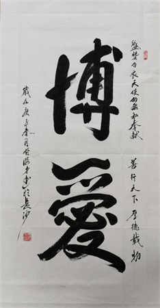 是的,用艺术作品去点燃观者的激情与美好的期望,这就是无穷的力量;而通过观看作品,又能给观者带来自信和奋发图强,这更是超然的精神食粮!昭才先生用作品说话,带给观者串串沉甸甸的精神果食,毫无疑问,这是当代书坛一道壮丽的风景!常言道,万丈高楼平地起。昭才先生的书法艺术之所以有今天的成就,是他多年来夯实根基的结果。有位读者曾观看昭才先生创作的六尺宣横幅行楷“善行天下”、“厚德载物”等作品后,情不自禁发出了“入木三分”的惊赞!我们必须要肯定,这位读者的惊赞,是理性和尊重客观事实的。昭才先生的书法笔力苍劲,雄浑博大,立意高古,犷拙奇崛,这就是“入木三分”的体现,更是一种精神的体现!