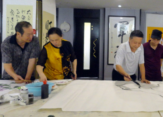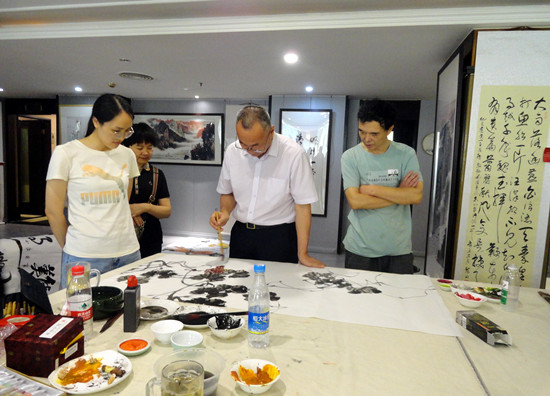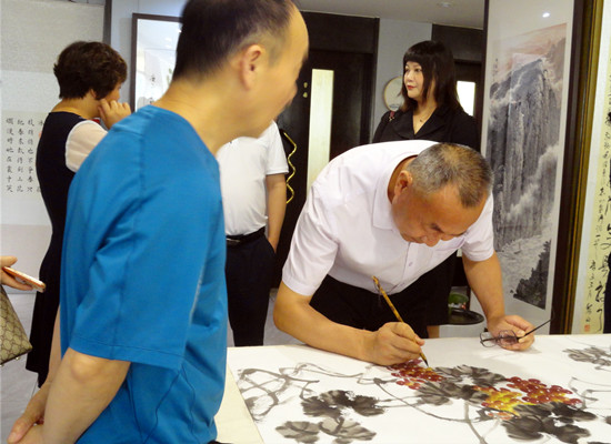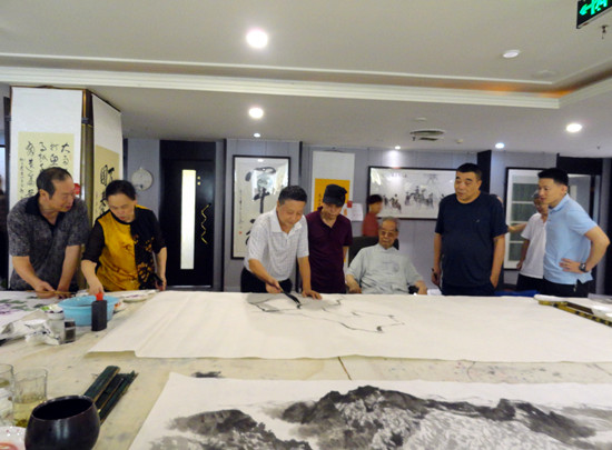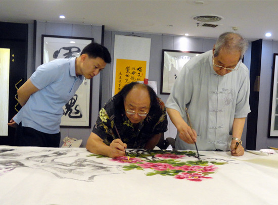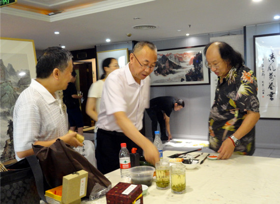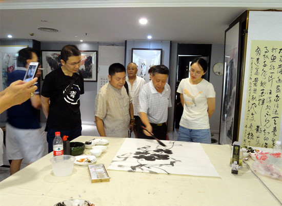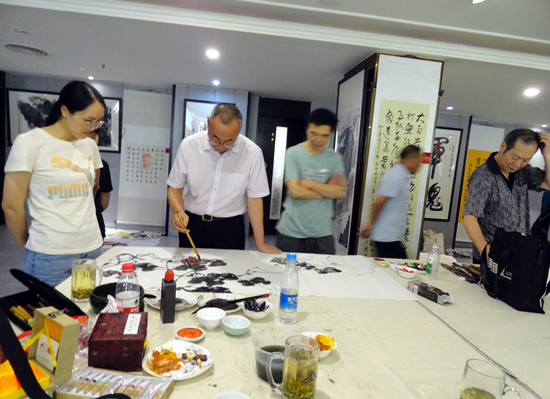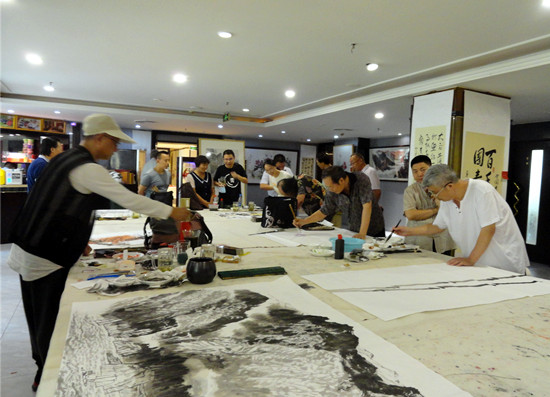 笔会现场,艺术家们饱蘸浓墨,豪情抒怀:或笔锋遒劲,大气磅礴;或笔走龙蛇,气韵流畅;或秀丽典雅,细腻舒缓;或俊秀婀娜,轻盈飘逸……落笔处,一会儿风和日丽,鸟语花香;一会儿平地风云,潮涨潮落。尽管在不同的艺术家们笔下,景致不同,风格各异,但大家都有一个共同的特点,就是极致发挥,各展所长,艺术魅力无穷尽。