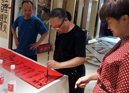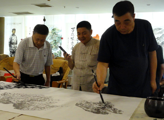 在长达六七个小时的笔会过程中,人头攒动,观者如织。艺术家们忘我创作,酣畅淋漓;观展嘉宾屏声静气,肃然起敬!面对一个个耳熟能详的艺术大咖和一幅幅精湛的艺术佳品,闻讯前来观展的游客和市民们久久不肯离去……