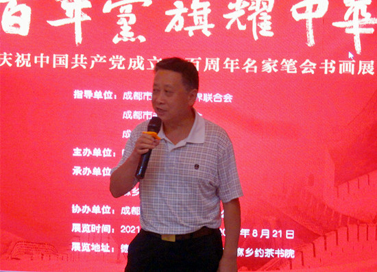 “抒初心,表赤心,展功力,秀技艺……”笔会上,成都市美术家协会主席姚叶红对本次书画展的成功举办赞不绝口。他说,参与本次书画展的艺术家们以饱满的创作激情,以对党、对人民无比热爱的赤字之心,以高超的艺术水平,丹青绘山河,礼赞共产党。笔端情涌,翰墨飘香。一幅幅精彩的画卷,就是艺术家们对中国共产党成立100周年的丰厚献礼。他寄语艺术家们,以本次书画展为契机,以更加饱满的激情,昂扬的斗志,高度的历史使命感和责任感,强根基,练内功,以艺术的笔触和视角,书写壮丽时代新篇章!