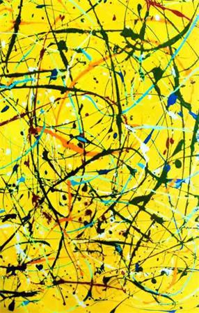 应该说,以上所有相关于“金色的雨”的人生体验和记忆,也都是油画家田迎人所要表达的内容和思考,而且一定还不止于此。而画面上,那一片色彩明丽、鲜艳,仿佛刚刚从清晨的原野上,采摘了一大束金盏花似的,那些带着露水的花瓣,经过白嫩纤细的手指碾压,又在清冽的甘泉里浸泡多时,并在正午阳光的照耀下沉淀,再一滴滴添注入金蜂的蜜酿,最终调制成易于附着在白帆布的稀有颜色。这种奇幻的颜色和光泽,是那样的清新悦目,温婉迷人,如同少女的目光,纯净得像是天然的琥珀,又似宁静夜晚金黄的月色,恬静而又安适,一派祥和。
