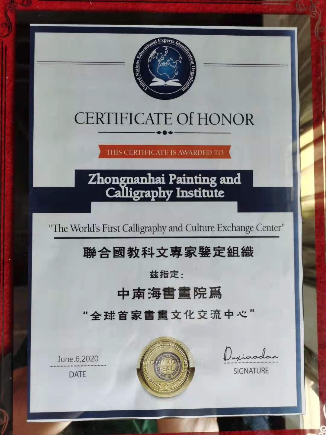 中南海书画院、 联合国教科文专家鉴定组织文化交流中心