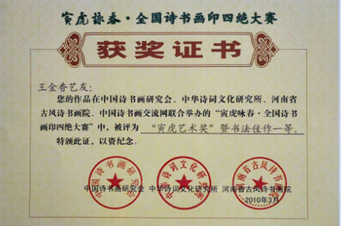 《翰墨丹青》迎世博全国老年书画艺术邀请展金奖作品