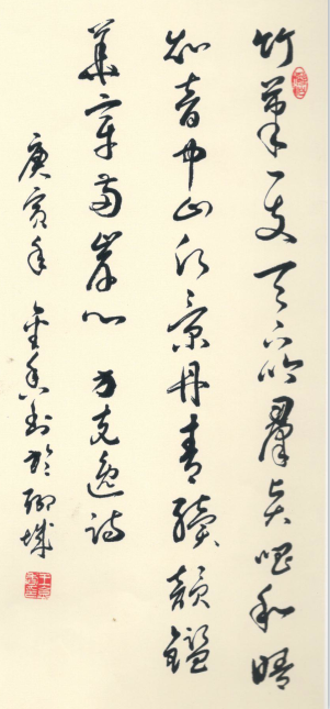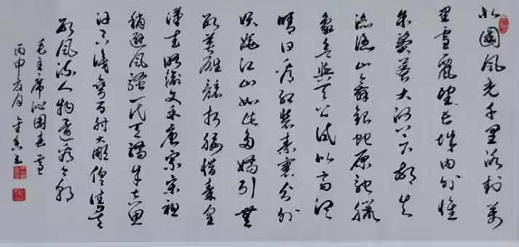 自幼喜爱书法,少临柳贴,后习赵体,博采虞世南、欧阳询、褚遂良、孙过庭、颜真卿、怀素、米芾、文徵明、董其昌、王铎等众家之长,行草书追溯至“二王”。习书五十余载,师古不泥,开拓创新,章法严谨,笔法细腻,精妙,自成风规。书诸体,擅行草。