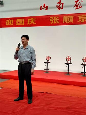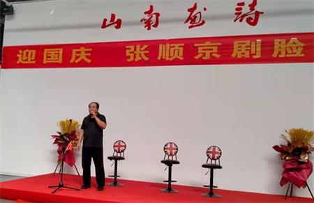 本网讯:2021年10月1日,金秋送爽,艳阳高照,为庆祝中华人民共和国成立七十二周年,弘扬中华民族艺术,振奋民族精神。由舜鼎艺术展览馆、道缘养生堂联合主办的庆国庆·张顺京剧脸谱展"在这里隆重举行,为来宾朋友及艺术鉴赏者,带来了一场别开生面的盛宴,到场的嘉宾有:山东省泉城画院院长云门子先生,山东省老书画艺术家协会主委鞠成立先生,付主委韦明先生,李金龙先生代表青州老乡到会祝贺。展会盛典有文君女士主持