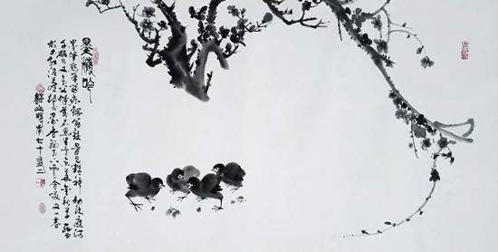 舒山先生的花鸟画,是从生活中汲取艺术的灵感与思维,花鸟作品往往栩栩如生,如上层楼。舒山先生认为:花鸟一样有七情六欲,要把花鸟画的传神,必须付之以情,花鸟画也应像人物画一样,达到:笔落处,情飞扬;无墨处,有余光。