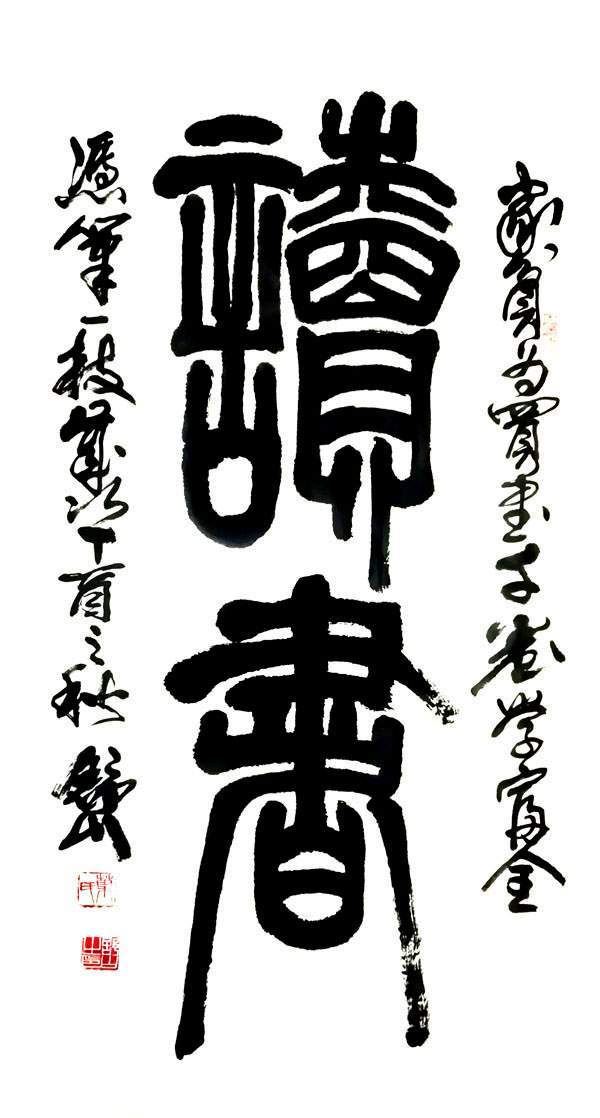 舒山先生的篆书更是功力深厚,他通临《说文解字》数遍,又探秦汉遗风,《锺鼎文》、《石鼓文》广泛涉猎,达到了用篆书行文,不假思索,穿越时空,古典大方的感觉。舒山先生的作品《人生如梦,富贵云烟》,体现了舒山先生对人生的感悟。