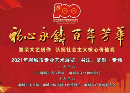 11月3日,由中共聊城市委宣传部、聊城市文化和旅游局主办,聊城市美术馆、聊城中国运河博物馆、聊城市直书画家协会承办的“初心永铸 百年芳华”2021年聊城市专业艺术展览(书法、篆刻)专场,在聊城中国运河博物馆举行。