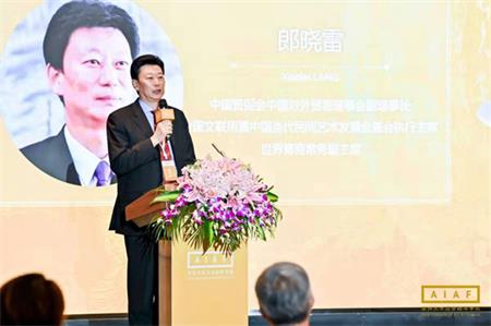 中国贸促会中国对外贸易理事会副理事长、中国文联所属中国当代民间艺术发展金基会执行主席郎晓雷致辞