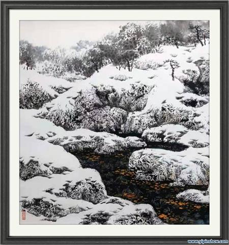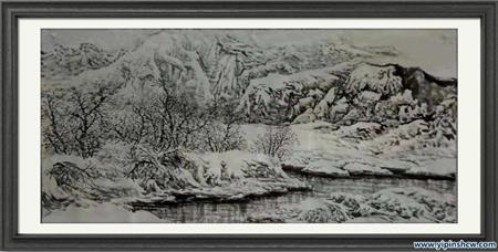 (三)常江,做为中国当代书画艺术标杆性人物,其学术研究的创新理论价值,是他对目前既具有市场发展前景的中国山水画系列冰雪创作画派的创新实践和研究。在当今社会,中国画创作可谓是人才济济,派系林立,冰雪画派的发展与创作,集专家学者画家光环一身的常江,大胆提出计白当黑的创作技法,以其留白艺术,是像非像,将道家学说融于处世原则,书画创作提倡与弘扬佛法结缘。技法追溯,介子园画谱,不落俗套,其自然洒脱的变化形式,使其作品独具大家风范。