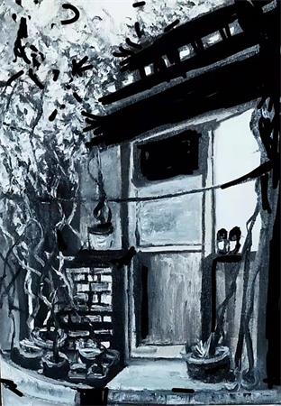 画家田迎人用她细腻的笔触创作的黑白油画《在家吗?》,为我们无声地讲述了一个发生在胡同四合院的故事。正像她的许多老北京题材作品一样,轻描淡写的画面中总有浓得化不开的情感。那是用一位女性画家特有的光影和线条,所编织的类似城南林海音和城北林徽因的散文,笔调柔和而又妩媚,声音亲切而又自然,勾勒出美丽的梦幻,引发你无尽的遐想。欣赏田迎人的胡同油画,脑海里会浮现《城南旧事》和《太太的客厅》……