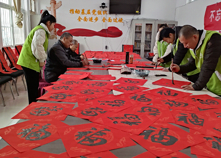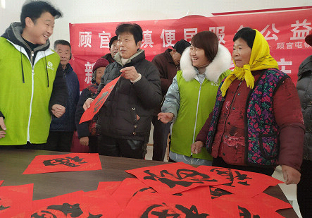 山东网:(刘延栋)1月20日上午,由山东省聊城市市直书画家协会、顾官屯镇政府、普心社工、聚爱志愿者协会共同举办的“不忘初心感党恩,书法迎春进乡村”活动,走进顾官屯兴隆村。