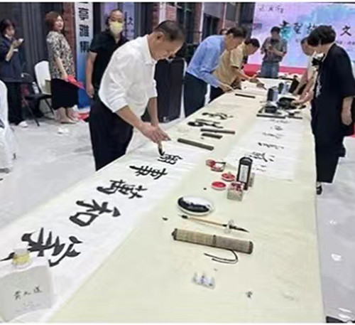 活动现场,王羲之研究会会长周华、临沂市政协原副主席马德仁先后致辞;本次诗书画兰亭雅集活动,由经典诵读、古琴演奏、书画创作等环节组成。颜体书法家赵义成等近40名临沂本地知名书画艺术家现场泼墨挥毫、纵情创作,一幅幅精美的书画作品既是弘扬中华优秀传统文化的见证,也是搭建各位书法家文化交流的桥梁。