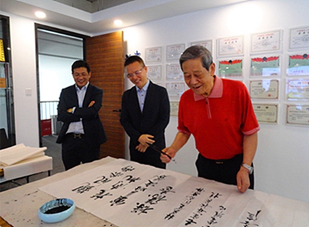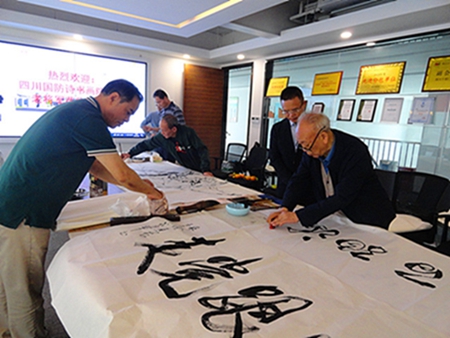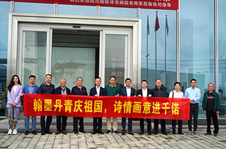 9月26日,雨后的初秋,微凉的空气中散发出一丝丝淡淡的桂花香,位于成都市金堂县成阿工业园区的四川航鑫新型建材有限公司迎来了一批德高望重的老将军和著名书画艺术家,他们的到来让这个紧张、忙碌的工厂顿时有了一种舒畅、优雅、浪漫而充满诗情画意的翰墨芬芳。