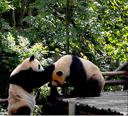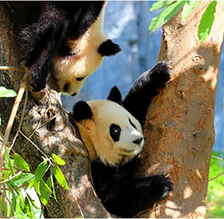 大熊猫憨态可掬,活泼调皮,喜欢攀爬。大熊猫以它逗人的喜感形象,迟缓有趣的动作,温和稳重的性情,受到世人的喜爱,不仅是中华国宝,还是和平的使者。目前,大熊猫已到世界上许多国家去做客,传播友谊,受到世界各国人民的无比喜爱。