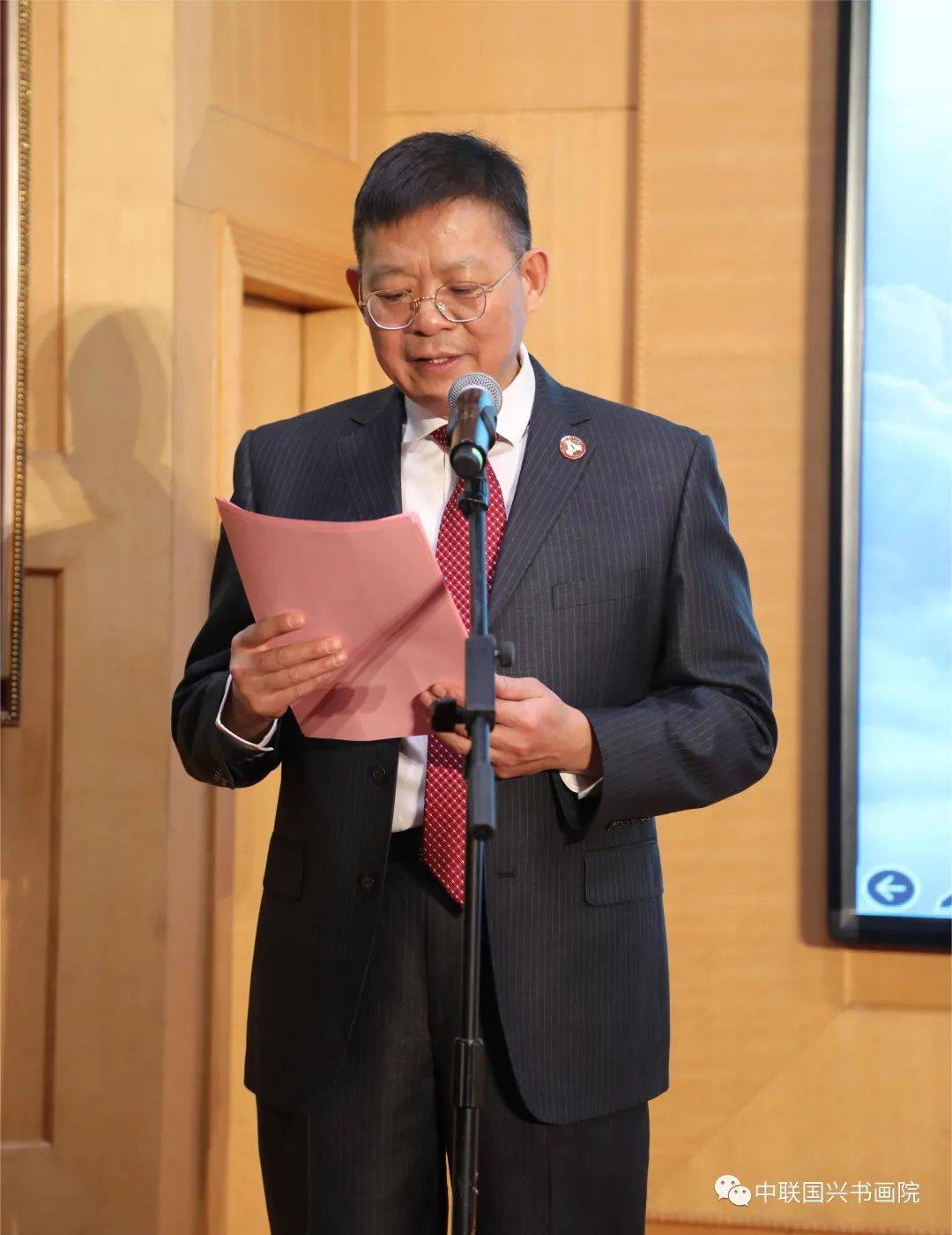 受中联国兴书画院院长、中共安徽省委原书记、中共宁夏回族自治区委原书记黄璜,中联国兴书画院院长、原解放军总后勤部政委周坤仁上将的委托,中联国兴书画院执行院长徐磊向大会作年度工作报告。