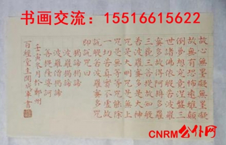 小楷代表作朱砂小楷《金刚经》册页,《道德经》长卷,《毛泽东诗词》长卷等,吸收融合了《灵飞经》、赵孟頫《汲黯传》、文征明《桃花源记》等历代名家之优点,用笔精细,字体端庄秀美,深得佛教,道教,藏友及各界人士好评。(王宏)