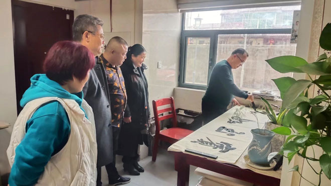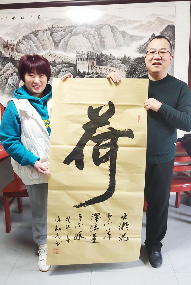 徐勤民的行书如行云流水,洋洋洒洒,一气呵成,其隶书力透纸背、俯仰互关,端庄稳健,字如其人,书若心爽。当天,他欣然为各位现场创作,书墨润友,情寄春光!