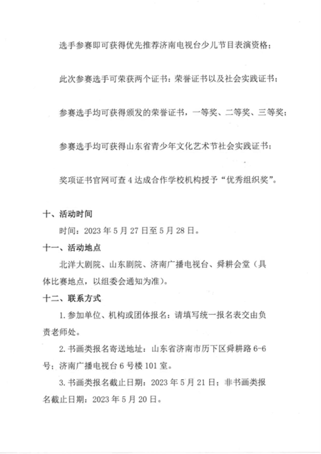 参赛选手均可获得山东省青少年文化艺术节社会实践证书