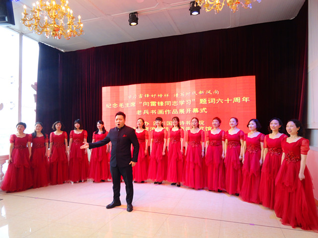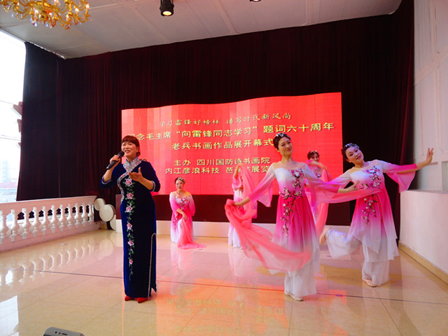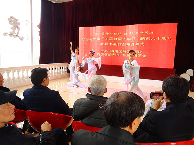 内江市市中区区委宣传部副部长、精神文明办公室主任李朝华在讲话中表示:今天我们在这里举办纪念毛泽东等老一辈革命家为雷锋同志题词六十周年老兵书画展,这既是弘扬雷锋精神,也是进一步弘扬书法文化,提升“中国书画之乡”的一次有力实践。李朝华认为,本次展览内容丰富,形式多样,紧扣时代脉搏,内容鲜明突出。书画艺术家们以雷锋精神为主题,用书法、绘画的形式,表达对雷锋的敬意和怀念。苍虬有力的书法把新时代的雷锋精神书写得撼人肺腑,简明朴实的雷锋肖像素描,给人们展示出雷锋的魅力和风采,具有很强的观赏性和感染力。他说,这次我们有幸与这么多德高望重的老一辈书画艺术家和勤于钻研的书画爱好者共聚一堂,倍感亲切和兴奋。相信这次书画展对于进一步提高内江市书画艺术的整体水平必将产生积极的促进作用,为推进全区精神文明建设作出应有的贡献。