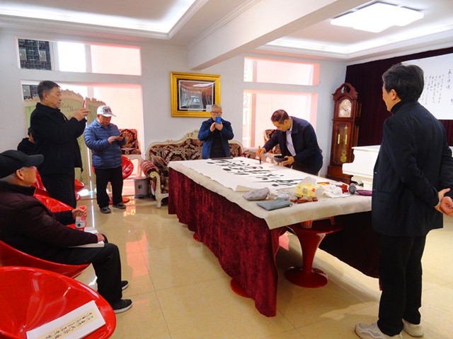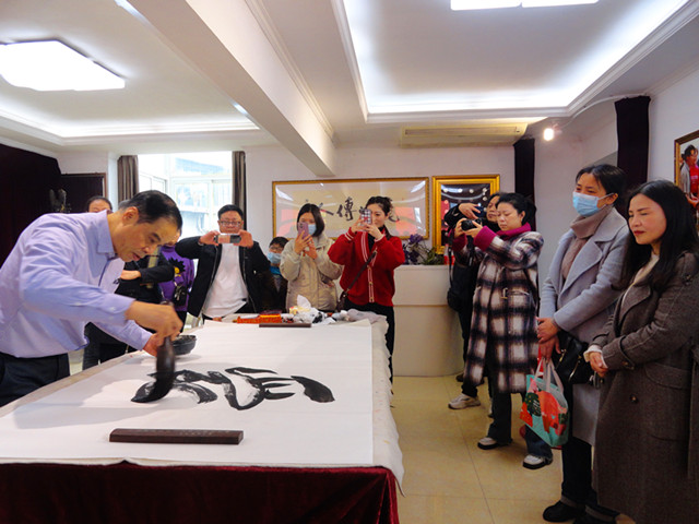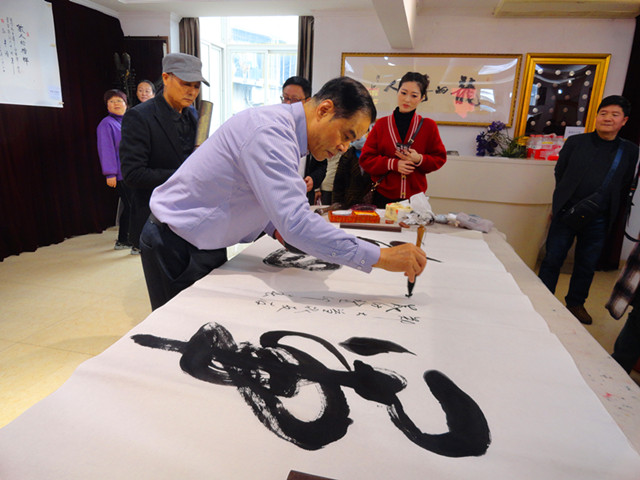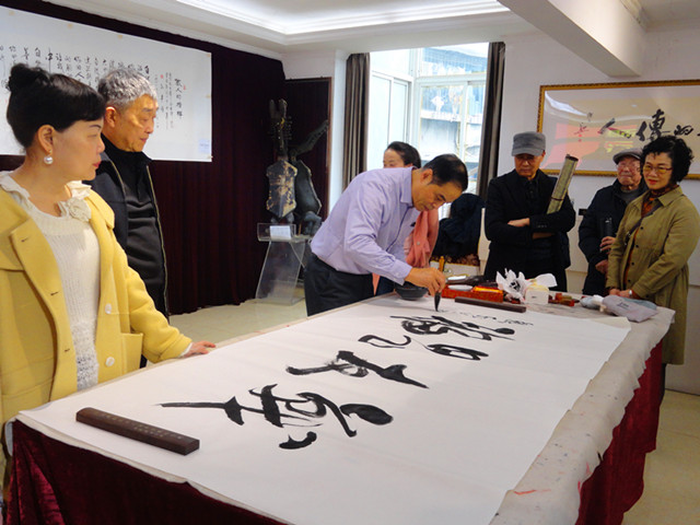 为了满足前来观展的现场嘉宾和群众的要求,庄宏华等书画家们不得不临时挥毫,现场创作出多幅精湛的书画艺术作品,赠送给那些热情高涨的书画爱好者们,并与他们合影留念。