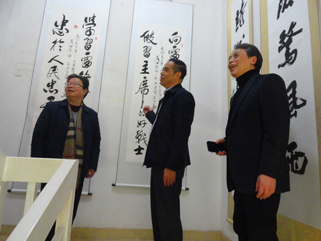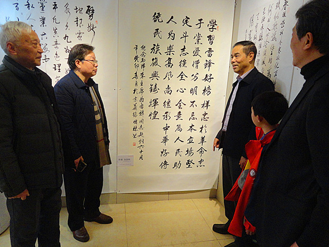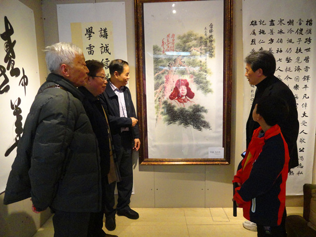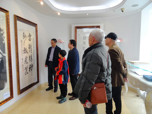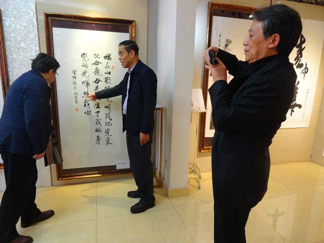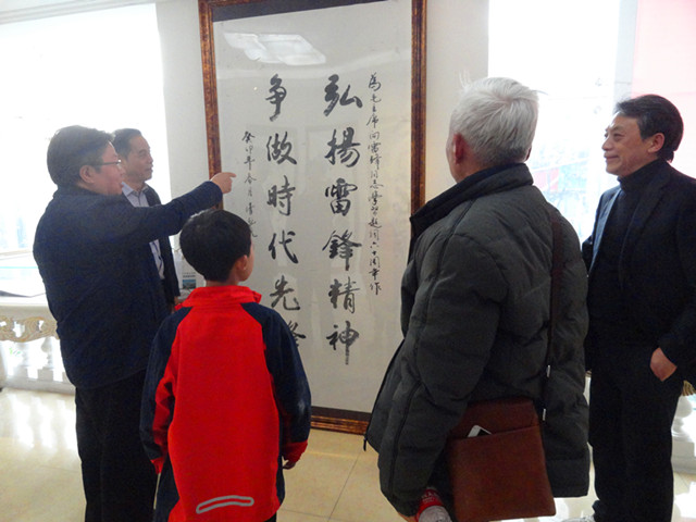 开幕式结束后,嘉宾们兴致勃勃地参观了书画展。记者现场看到,整个展览共有5层楼,展示的书法作品行书、草书、隶书、篆书和楷书等应有尽有,横幅、竖条、册页、屏条、扇面等不一而足。内容有抄录伟人题词、雷锋日记,还有更多的自创诗词、感悟、感言等。绘画作品,即有国画,也有油画,即有人物、山水,还有花鸟,即有工笔,也有写意。嘉宾们普遍认为,本次书画展艺术性强,品位高,观赏性与教育性俱佳,行家有借鉴,观众有看点,雅俗共赏,接地气。