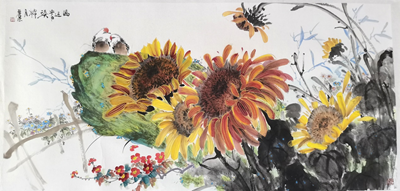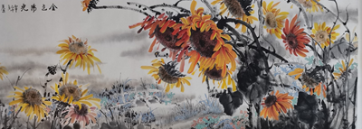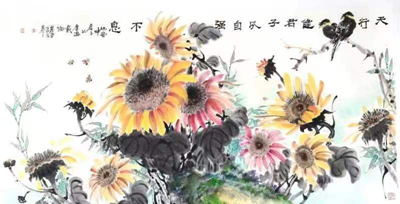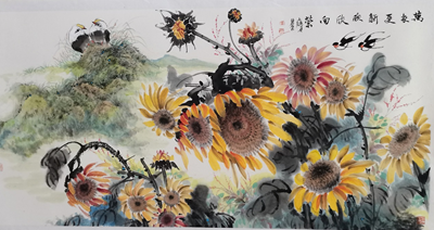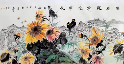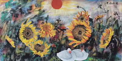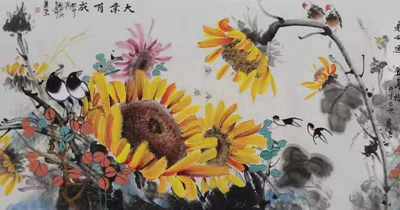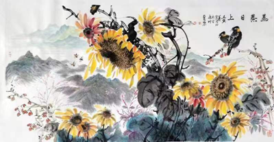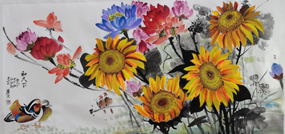 王丽荣、唐文翰画家不断努力勇于创新,这次展览内容在王丽荣向日葵基础上又有了山水、荷花、鸟雀等新的东西,画路宽厚。传统绘画基础扎实,笔墨酣畅淋漓,构图形式多样。俗话说:“笔墨当随时代”,王丽荣的当代水墨更是色彩斑斓,耳目一新,让人观之赏心悦目,梅兰竹菊一招一式招招收方自如。