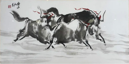 初敬业作品将以书入画作为绘画的艺术特色,造型以"以形写神,形神兼备"为基础,用"景"与"情"的结合为辅助,并且大胆把现代摄影视觉、光影等技法融入到笔墨的表现中,来提高画作墨韵的灵动润泽和整体视觉上的冲击力度。作品中每头耗牛均在浓、淡、干、湿、焦的水墨淋漓中尽显出雄健野性。此次将展出三位艺术家40余件精品新作。