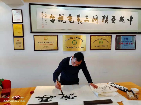 吕老师看过陈中元写的字后,感觉他是真心喜欢书法,于是就用笔写了一个‘点’,让陈中元回家写10万次。为了写好那一“点”,短短一个月时间,100张一刀的宣纸陈中元足足用了近5刀。