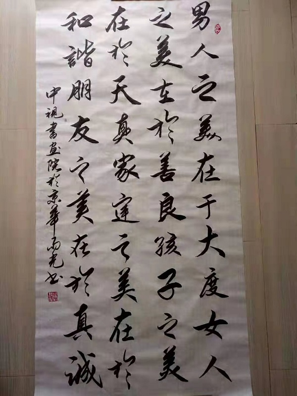 到吕老师家时,他正在练习书法。当时陈中元感觉自己的字写得还算工整,便拿起吕老师的毛笔在一张宣纸上写下了几个字,希望吕老师指教。吕殿水老师看过他的字后,批评他写得没有一点章法,根本就不能叫做书法。