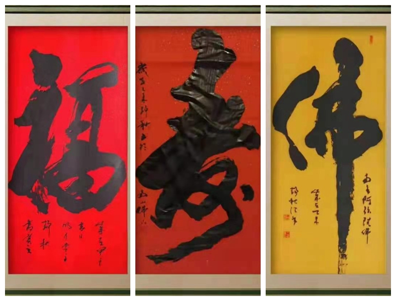 他那以行草见长的书法也日见闻名,多次参加国家级书画大赛并获奖:获全国第五、六、七届“金鼎奖”书画大赛金、银奖;作品被中国邮政出版纪念珍藏邮册和邮票全世界发行;作品“一笔佛”入选《全国书法美术作品集》,有“佛字王“之圣称;作品还被美国、台湾、港澳同胞、大德高僧等国际友人收藏,视为神龛;书法荣获“全国书法美术百杰”及“当代中国书画收藏市场最具收藏价值的艺术家”、"中国当代书画艺术领军人物”,“ 中国当代书法名家”等荣誉称号。出版有《中国当代艺术家王静秋诗词书法卷》。