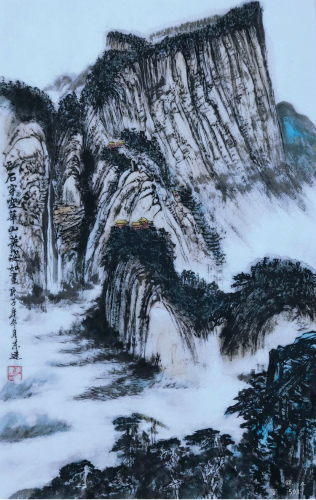 陈东远先生每创作一幅画,都是有故事的。下面《华山图》就是其心里华山精神表现。