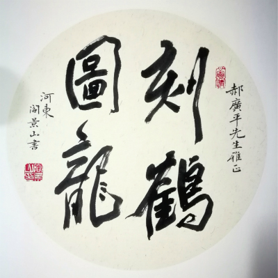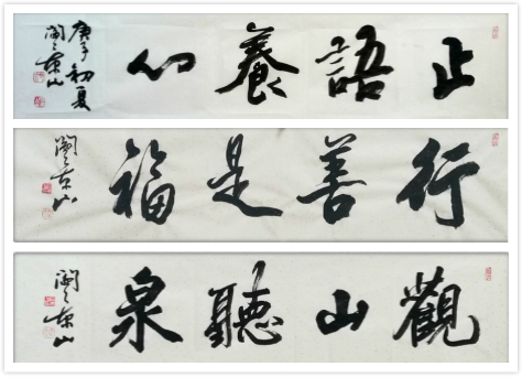 细品阎景山老师的四字榜书,作品中透着沧桑和从容,流畅大气,灵动,欣赏之余,亦感觉到蕴藏着阎景山老师对世事的参悟,是珍惜,是善待。书法人生,是对美与善的追求和传播,是对自己与他人的劝勉,也是书法艺术的境界吧!