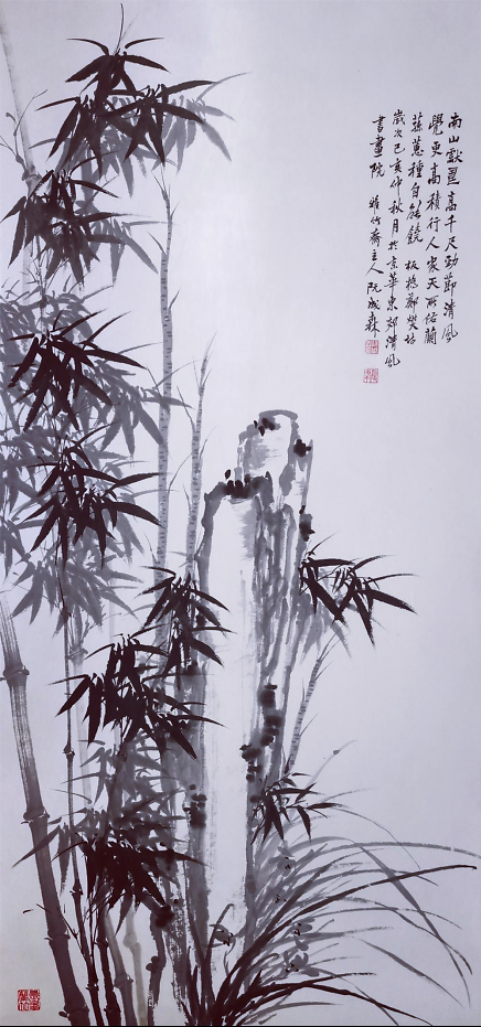 我认识阮成森先生的机缘在北京的东晓景书画创作基地,缘分使然, 我渐渐结识了解了阮成森先生。画如其人,阮成森先生的画作,花鸟人物无不涉猎。他的画细微清新,尤善兰竹。特别画竹,成竹在胸,飘逸洒脱。兰竹配石,典雅妥帖,笔墨精熟。识家一看便知是科班出身而又归野逸,幅幅透着名家风范。阮成森的画有一种中国画的人文精神,我们常说起“文人画”。余则认为文人画即画中有文人情趣,画外有文人思想。文人画不是民间画,不是学院画,似乎有别“画家”的画。文人画往往取材梅兰竹菊,山石小景,讲求笔墨情趣,强调神韵,强调人的修养。阮成森先生的画恰与文人画的规律极为契合,我想这与他的经历学养,孜孜不倦的追求是分不开的。