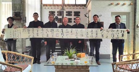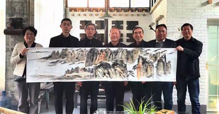 三位书画家王邦定、音邦杰、范忆九以及一位从军27年的原省武警部队的退休警官严晓祥,他们自带私家车辆,携带笔墨纸砚,在这“布谷鸟鸣忙布谷,牵牛花绽喜牵牛"的初春二月,踏进了风景秀丽的霍山山城,来到了久负盛名的仙人冲,与画家村的第一发起人,年轻有为的文艺青年,南北美术馆馆长一一沈继祥,举办了一次“亲近大自然,泼墨画家村"的写生、书画交流笔会活动,这也是该村南北美术馆,自2016年建馆以来的第一次与省城书画家的艺术交流。