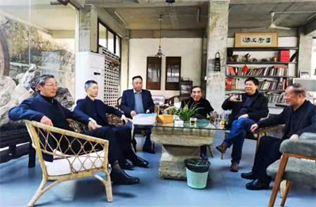 起初,几位书画家只是想借着明媚的春光,踏青旅游与写生。其中,两位书画爱好者王邦定与范忆九,就是曾经生活、战斗在这该村的省军工三线企业皖西化工厂、皖西机械厂与东风机械厂……还是让时光轮回到上个世纪的六十年代中期,那时,这里的生产厂房依山而建,蜿蜒延伸一一它就是过去安徽军工三线厂的老厂所在地。作为一名书画人,来到了诸佛庵的仙人冲,你可以不知道三线厂,但不能不知道画家村。在一位书家范忆九的女同学刘华主任,韩琴校长,以及初高中同班老班长刘富贵同学的提议下,对几位书画家的霍山之行,作了精心安排。美女同学刘华主任,事先还与该村南北美术馆沈继祥馆长进行了沟通,建议让他们去画家村参观交流,这一建议便很快受到了大家伙的赞同!