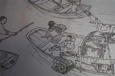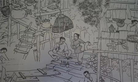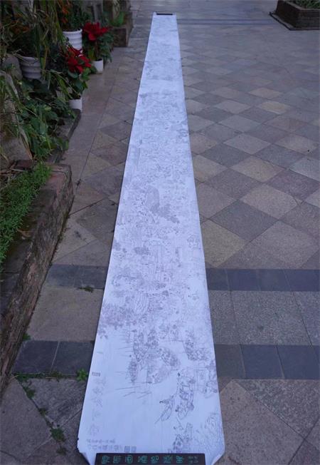 今復攜半生功力,構思十載,不顧疫情,費時經年,夜思日繪,作《東莞老百行》,將民間三百六十行中凡一百五十餘行悉數囊括入內矣。觀其畫作,計有高矮胖瘦男女老幼凡一千五百餘人,修鎖收糞,鬥雞喊驚,飲茶賭博,沽酒補鞋,結網捕魚,縫衫織篾,鄉村閑人,豪商巨賈……應有盡有,可謂百花過眼,目不暇接也。