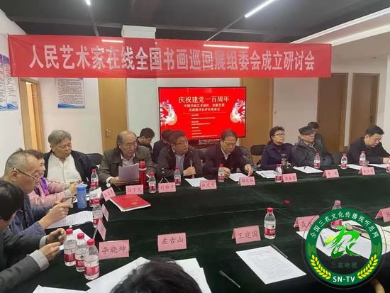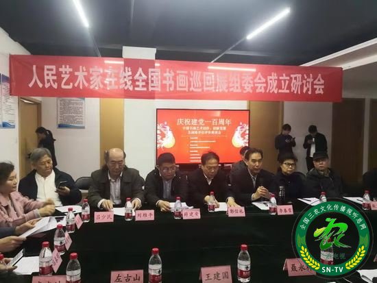 2021年4月17日,由中视通成融媒体发起,人民艺术家在线、中视融媒体新闻网、中国党政理论网等单位和机构共同发起的人民艺术家在线全国书画巡回展组委会成立座谈会在北京东城朝阳门内隆重举办。参加本次座谈会的领导和嘉宾有:全国人大办公厅服务局原局长李春雪,全国政协办公厅秘书局原局长郭信礼,中国党政理网执行总编辑李君,中国价格协会文物艺术品委员会会长陈俊,中国文化艺术发展促进会艺术品交流工作委员会会长王建国,文化部文化品牌评测技术重点实验室主任左古山,文旅部老干部书画协会会长聂永祥,广东金融学院粤港澳大湾区艺术品金融研究院院长吕少民,中国价格协会书画部主任朱丙林,中国价格协会书画部副主任、人民艺术家在线主编薛建安,著名画家刘维平老师,著名军旅书画家柴京津老师,书法家张和老师,溥石老师,郑东伟老师,孔令伟老师,佟宝全老师,魏斗老师,冯春明老师,张春月老师等书画艺术家及中央和国家新闻媒体记者50余人参加了本次座谈会。
