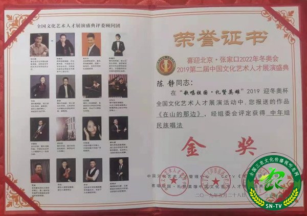 主要简历:1978年3月出生于河北省张家口涿鹿县太平堡村,从小对音乐酷爱和执着。1997年4月在涿鹿县卧佛寺乡太平堡小学担任幼儿音乐教师。2006年考入山东齐鲁音乐艺术学院,专修民族声乐和古筝,曾从师于中央音乐学院安英教授,并通过中央音乐学院的古筝专业师资考核认证。2011年在中国宁波红歌赛中,荣获第三名。由涿鹿县易枫老师和范春林老师谱写的原创歌曲,陈静演唱的《在山的那边》,获得了《喜迎北京,张家口2022年冬奥会》的金奖、2019年第二届文化艺术人才选拔赛中,获得金奖。2019年受涿鹿县委宣传部的邀请,担任庆祖国70周年华诞大合唱总决赛评委。中国河北鑫雅筝社创始人。