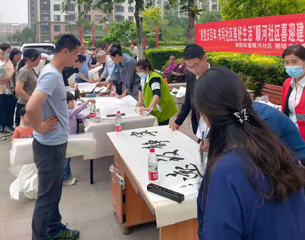 山东新闻网:(苏金生 刘延栋)5月15日上午,山东聊城东昌府区柳园街道顺河社区及金安物业,特邀聊城市市直书画家协会志愿者首次进驻“金柱大学城”,为小区居民开展了“迎党庆百年,书写社区美好生活”迎党庆书法进社区活动。