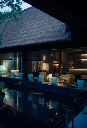 开阔的客厅,衔接的游廊,内庭蓄水成池,引水入境。二楼露台,河畔周边,不囿于一方茶室,茶境可延展到画廊船上,天地之间。空间序列上抑扬顿挫,游走动线曲折迂回,移步换景,自然天成。