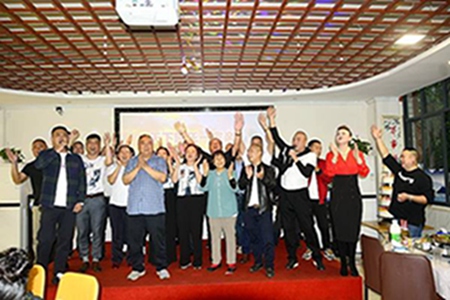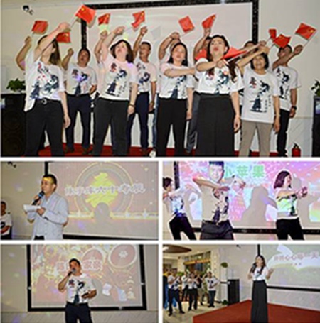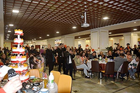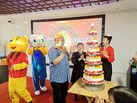 “让我们共同祝福陈宇库大哥生日快乐,身体健康!”随着主持人陈丽娅的介绍,一个个节目精彩上演。第一个节目是合唱《我和我的祖国》,一个接一个的节目越来越精彩,舞蹈《小苹果》,独唱《陈氏一家亲》,《开开心心每一天》,《呼伦贝尔大草原》,《梨花颂》……伴随着清脆的歌声,她们舞动着身子,动人的歌词和专注的表演将现场的气氛烘托得十分喜庆。