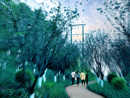 半山公园,坐落于重庆市九龙坡区中梁山街道龙门阵大道畔山林语,园内有安静休憩区、文化休闲区、休闲健身区、生态防护区等区域。
