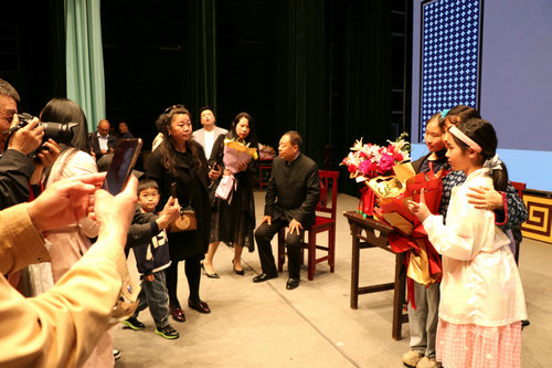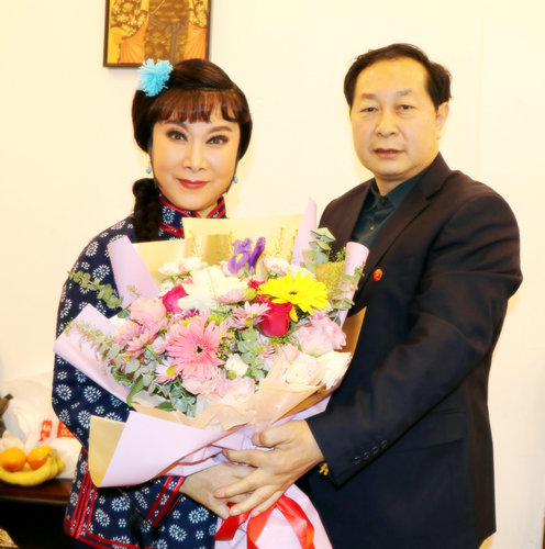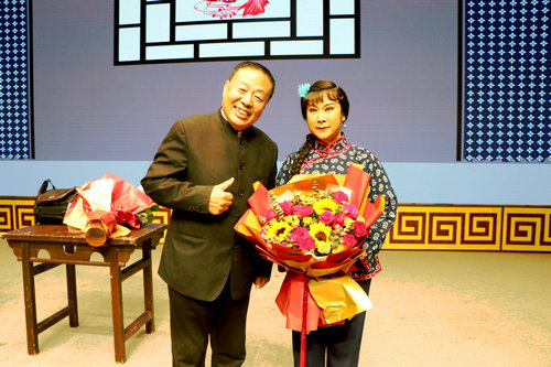 评剧老戏迷孙佑刚向张秀云赠送鲜花