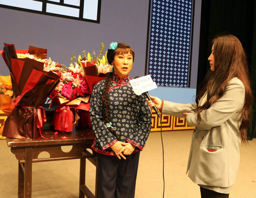 著名评剧表演艺术家张秀云演出结束后接受记者采访